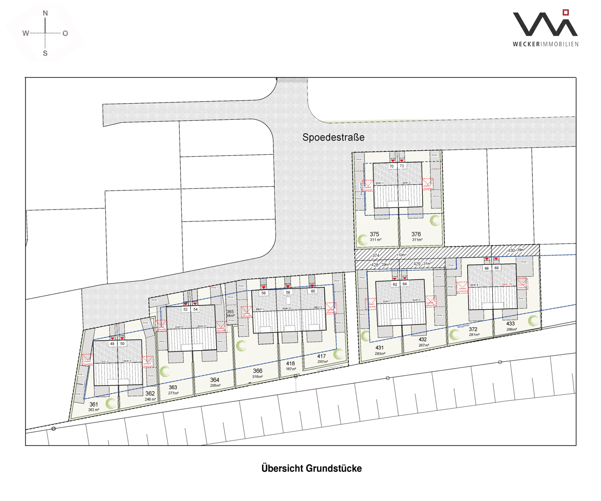 Beispielhaft wird in diesem Exposé das Grundstück Nr. 366 beschrieben. Das Grundstück hat eine Fläche von ca. 318 m². Weitere Grundstücke sind verfügbar.