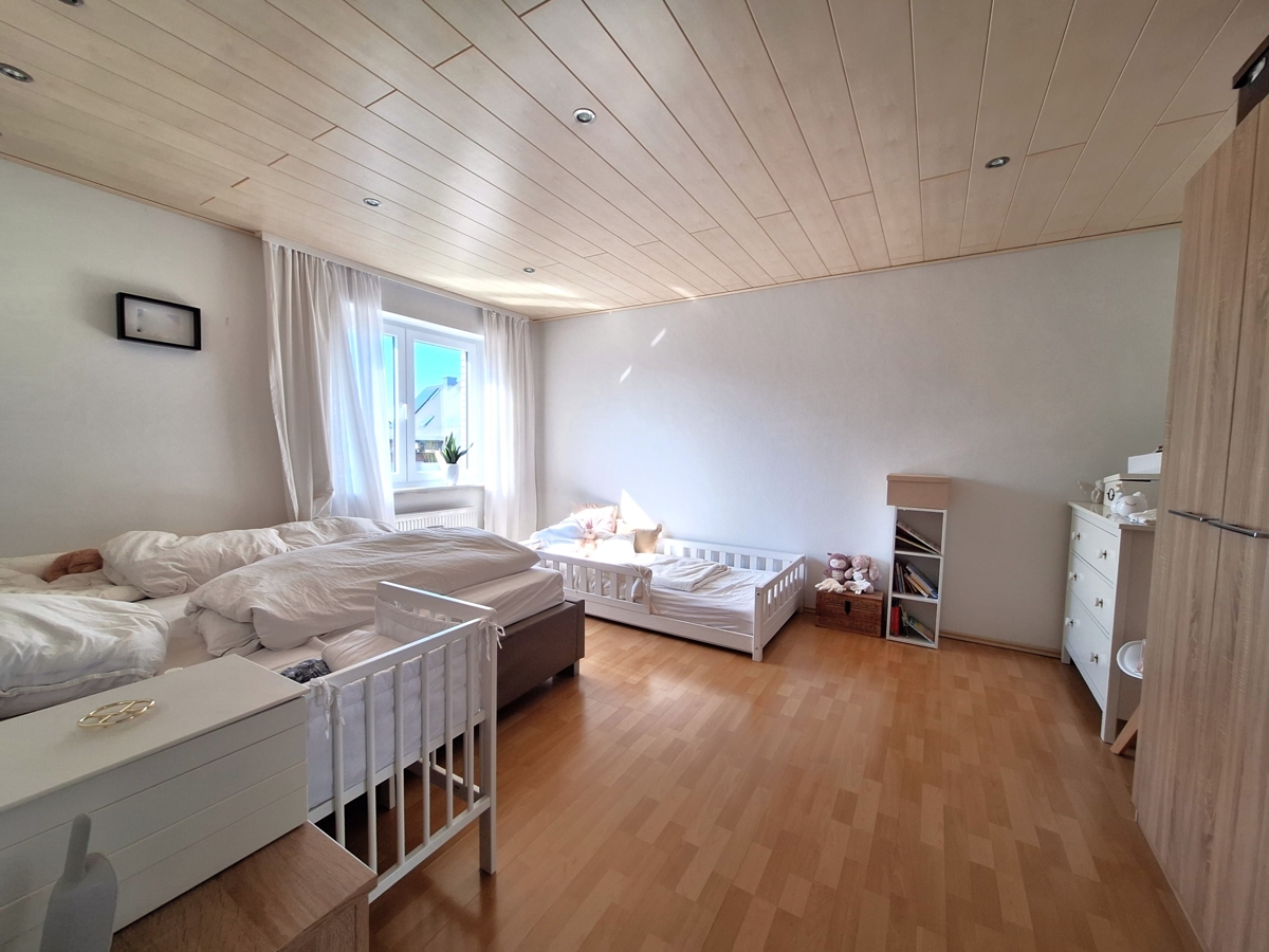 Im Erdgeschoss ist mit dem Anbau ein ca. 12 m² großes Schlafzimmer mit eigenem Duschbad geschaffen worden. Freuen können Sie sich auch über die zwei großen Schlafzimmer mit je ca. 18 m² im Obergeschoss. Eines davon besitzt den Zugang zur reizenden, etwa 16 m² messenden Dachterrasse, von der aus Sie in den rückseitigen Garten schauen können. Das dritte Zimmer auf dieser Etage wird aktuell als Büro genutzt, wäre aber auch für ein kleines Kinderzimmer ideal.