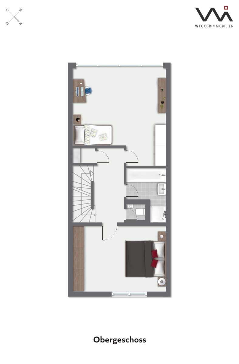Im Obergeschoss erwarten Sie zwei großzügige Schlafzimmer. Eines davon wurde durch die Zusammenlegung zweier ehemaliger Kinderzimmer und den Ausbau des Balkons in einen geräumigen Raum verwandelt – ideal für persönliche Entfaltung oder als komfortables Hauptschlafzimmer. Weiterhin praktisch: Badezimmer und WC sind auf dieser Etage voneinander getrennt – ein Plus im Alltag. Ein zusätzlicher Abstellraum bietet wertvollen Stauraum und sorgt für Ordnung ohne Aufwand.