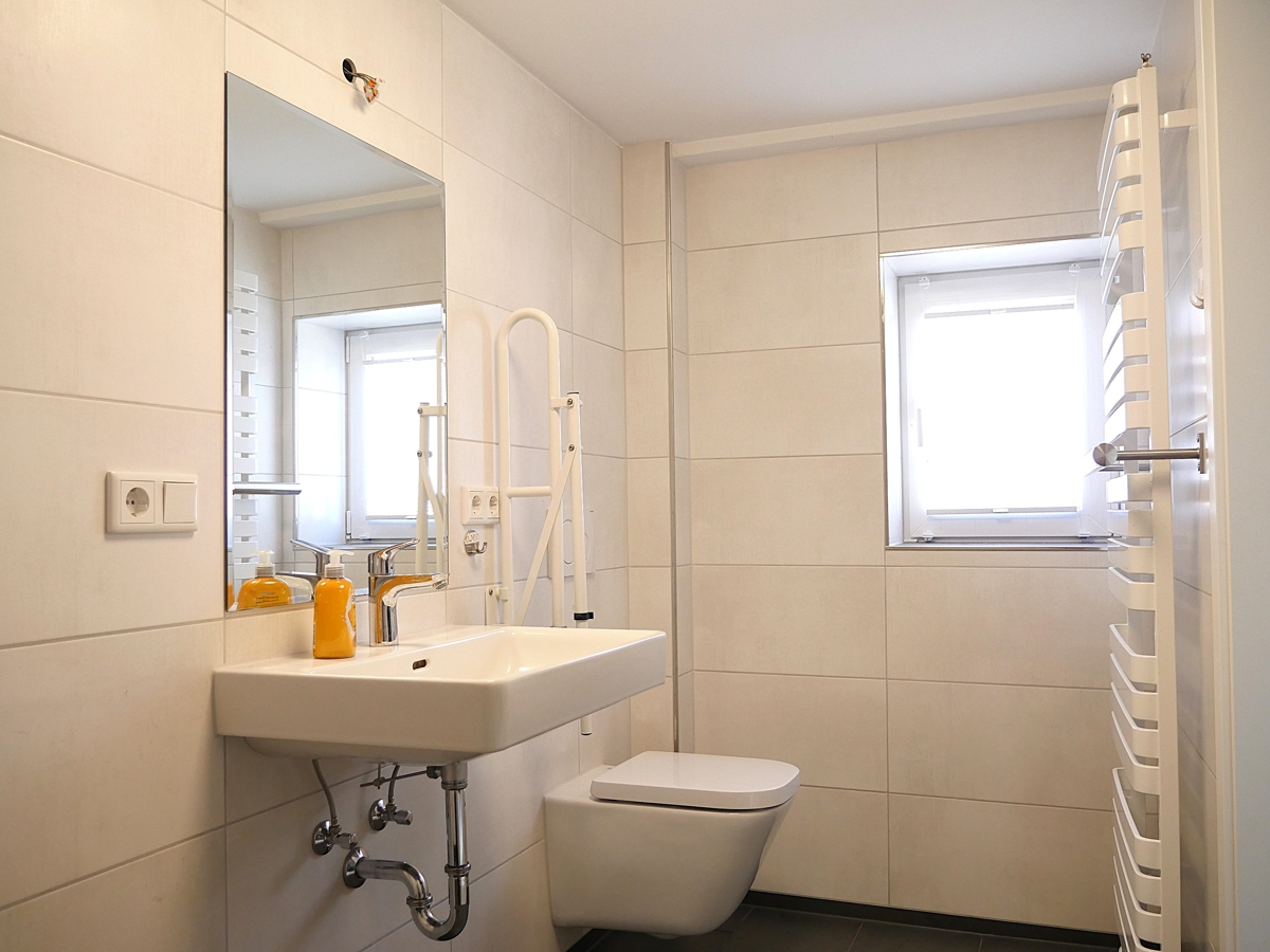 Das Raumangebot wird durch ein Badezimmer mit Badewanne und Dusche abgerundet, das praktischen Komfort auf kleinem Raum bietet.