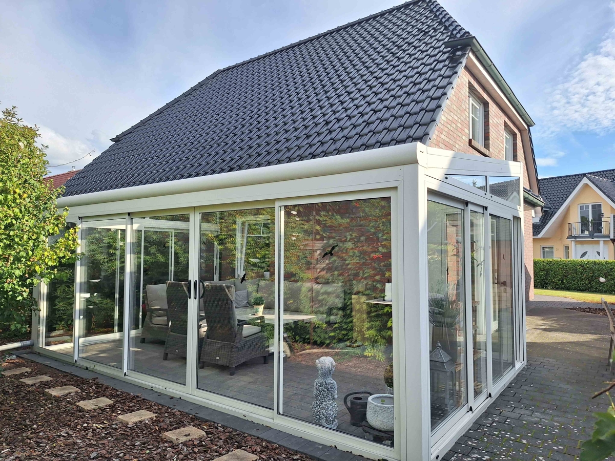 Das große Grundstück ist ein Paradies für Gartenfreunde und Familien. Während die Kinder unbeschwert spielen, entspannen Erwachsene im Grünen oder verbringen gemütliche Stunden im Wintergarten. Besonders an kühleren Tagen ist der großzügige Wintergarten ein Ort der Ruhe – ein Platz, an dem man die Seele baumeln lassen kann, während draußen der Wind die Blätter tanzen lässt.