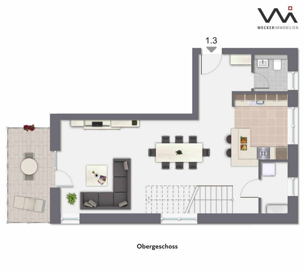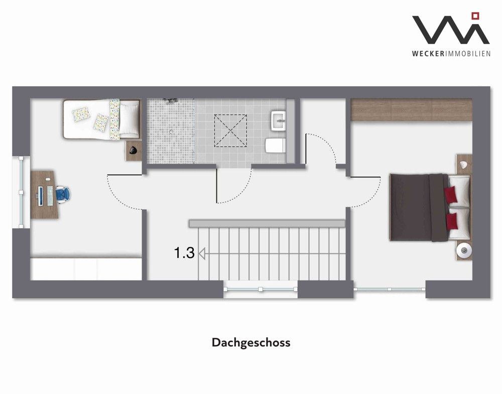 In diesem Exposé ist beispielhaft im Haus 1 die Dreizimmerwohnung Nr. 3 im Ober-/ und Dachgeschoss beschrieben (siehe Grundriss Wohnung Nr. 1.3).