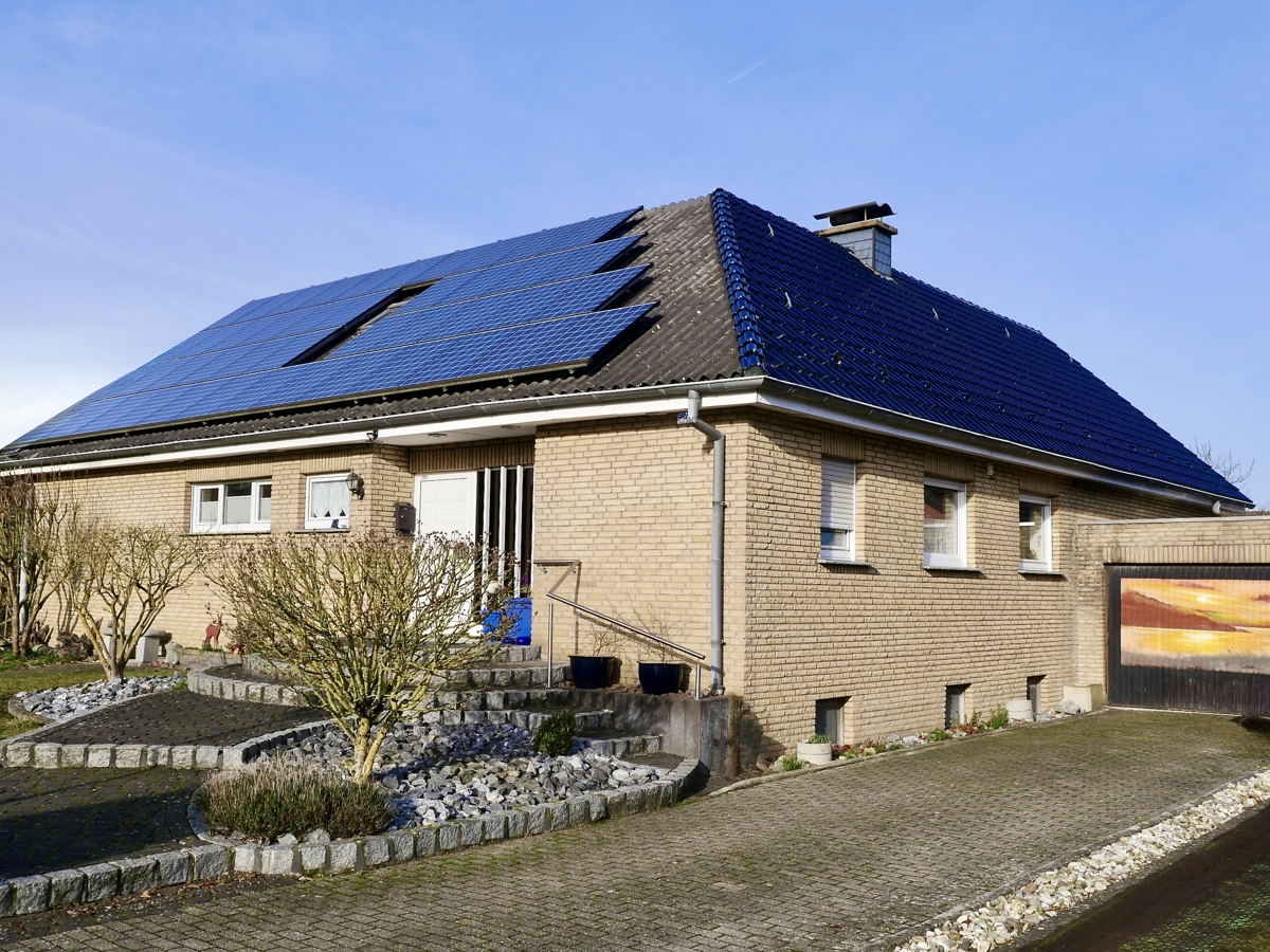 Dieses gepflegte Einfamilienhaus im Bungalow-Stil mit teilweise ausgebautem Dachgeschoss überzeugt durch einen praktischen, zeitlosen Grundriss. Der L-förmige Baukörper ermöglicht eine klare Trennung von Wohn- und Privaträumen und sorgt so für ein angenehmes Maß an Rückzug und Privatsphäre.