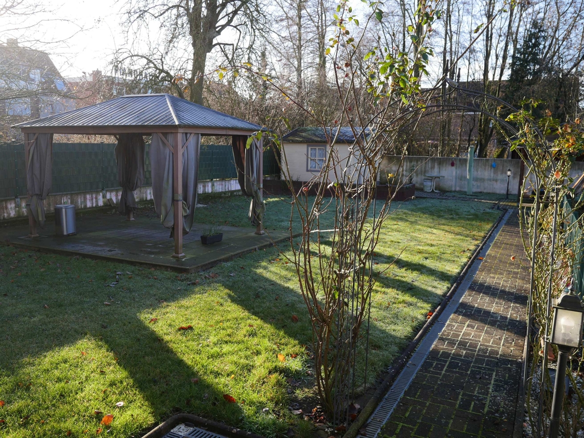 Ob Sie einen Gemüsegarten anlegen, unter dem Pavillon eine Gartenparty feiern oder einfach die Sonne genießen möchten – der Garten bietet viele Möglichkeiten und unterstreicht die Großzügigkeit des Hauses. Zusätzlich erhalten Sie passend dazu zwei Garagen für Ihre Fahrzeuge.