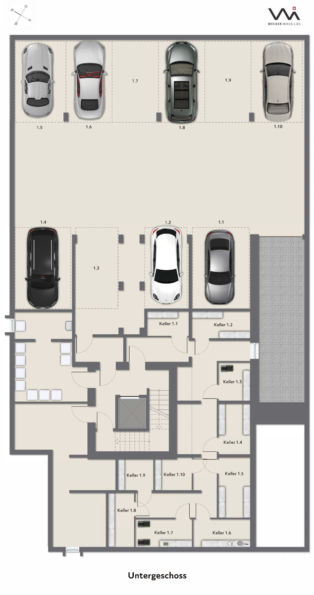 Der elektrische Torantrieb der Tiefgarage wird per Handsender gesteuert. Für jeden PKW-TG-Stellplatz wird über ein Lastmanagementsystem inklusiv Verkabelung zum Stellplatz die Möglichkeit eröffnet, ein E-Fahrzeug zu laden. Die system- und versorgerabhängige Ladebox (Wallbox) am Stellplatz ist nicht Teil der Leistung. Sie ist bei Bedarf auf eigene Kosten zu erstellen. Im Fahrradraum wird für jeden Fahrrad-Abstellplatz bzw. Fahrrad-Abstellplatz-Lastenrad eine Steckdose als Lademöglichkeit für E-Bikes installiert.